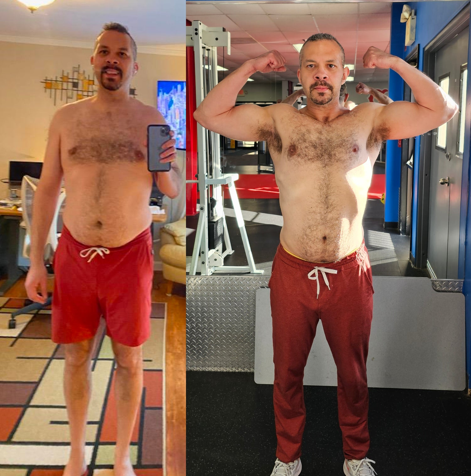 The client's goal was to achieve more confidence in their physique, which to them meant a mixture of losing weight and building muscle. Significant progress was achieved in a little under a year.